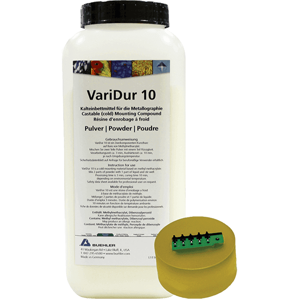 Metalografi dünyasının en tanınmış hızlı kalıplama reçinesi. Sadece 5-8 dakika içinde tamamen sertleşir. Rutin kontroller, büyük boşlukların doldurulması ve devre kartlarının (PCB) kapsüllenmesi için en verimli yoldur.
